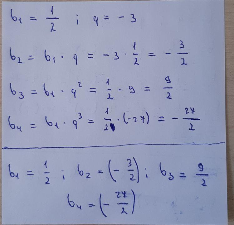 запиши чотири члени геометричної прогресії bn якщо b1=1/2,q=-3
