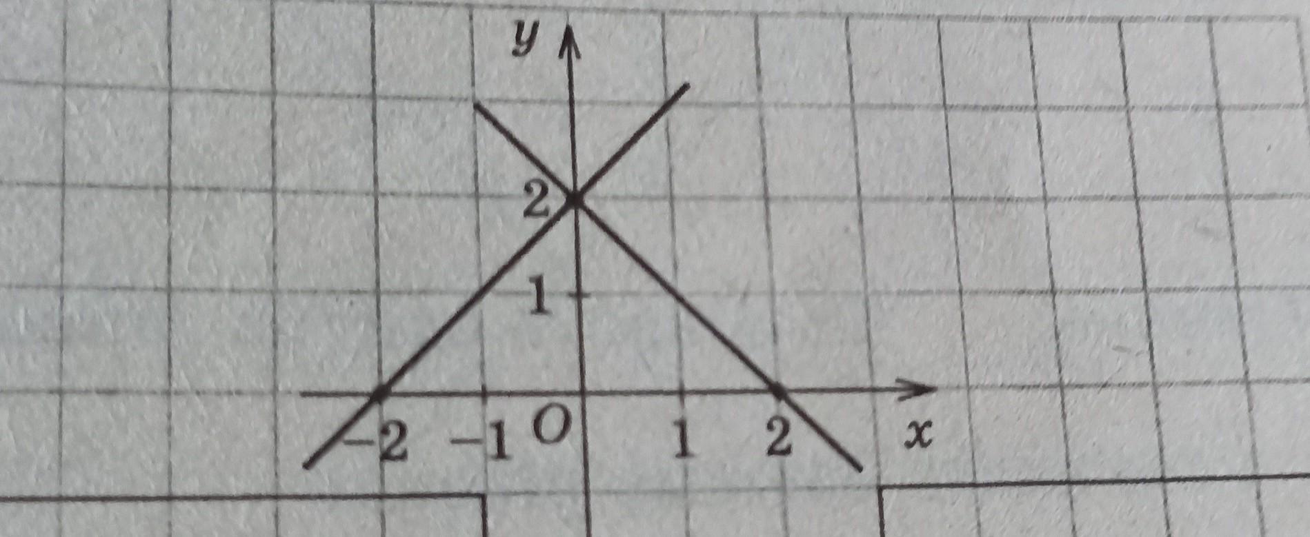 визначте який із графіків на рисунку відповідає порівняно x+y=2 а який рівнянню y-x=2 і підпишіть їх розв'язком системи рівнянь {x+y=2. є пара рівнянь