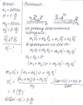 Із човна масою 200 кг, який рухається зі швидкістю 2 м\с, стрибає хлопчик масою 50 кг зі швидкістю 6 м\с. Визначте швидкість руху човна після стрибка, якщо хлопчик стрибає:з носа човна під кутом 60⁰ до горизонту, в напрямку руху човна