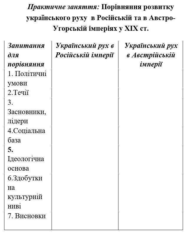 https://naurok.com.ua/urok-z-istori-ukra-ni-9-klas-praktichne-zanyattya-sklasti-porivnyalnu-tablicyu-rozvitku-ukra-nskogo-ruhu-v-rosiyskiy-ta-avstro---ugorskiy-imperiyah-u-19-stolitti-245715.html зайди на ссылку там ответ есть