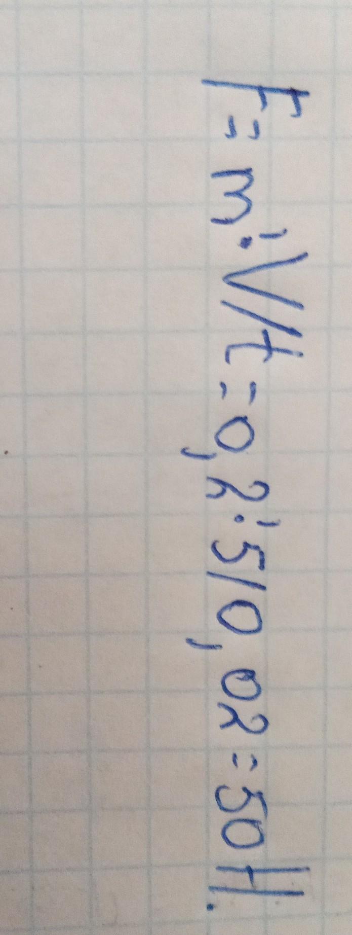 М'яч, маса якого 200 г, після удару тривалістю, 0,02 с набув швидкості 5м/с. Яке середне значення сили удару,