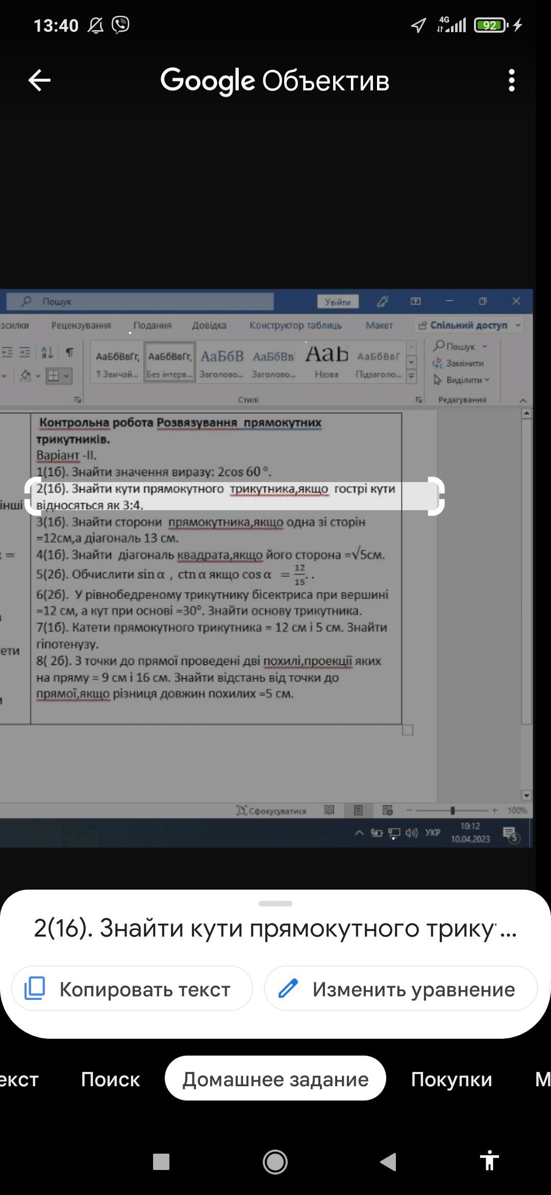 Ответ: Нехай гострі кути прямокутного трикутника відповідають кутам A і B, і нехай A відповідає меншому куту. Тоді, згідно до умови задачі, виконується співвідношення: