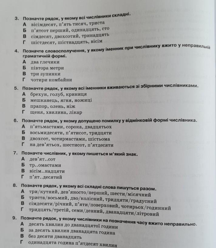 6аПомилка у відмінковій формі числівника допущена у рядку А: замість “п’ятьмастами” має бути “п’ятьмастами