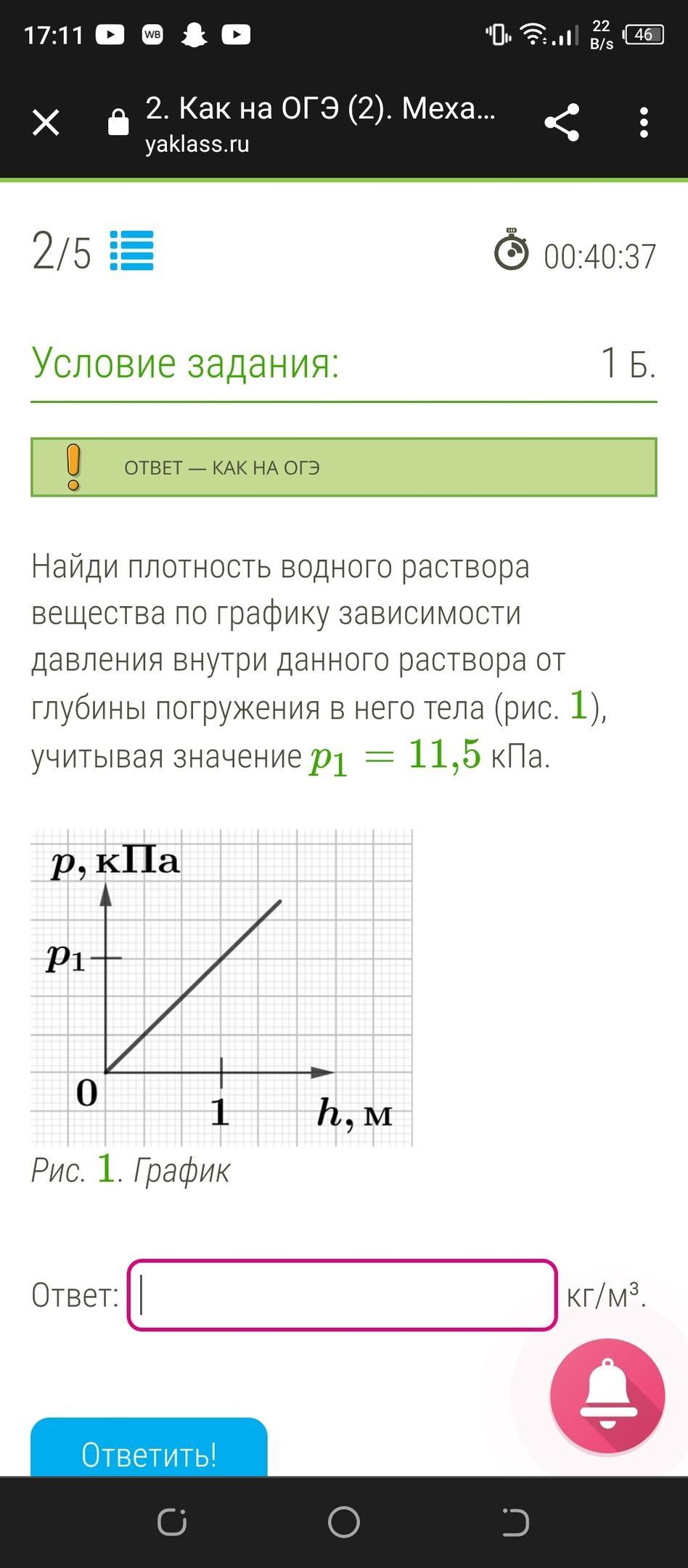 найди плотность водного раствора вещества по графику зависимости давления внутри данного раствора от глубины погружения в него тела (рис 1)
