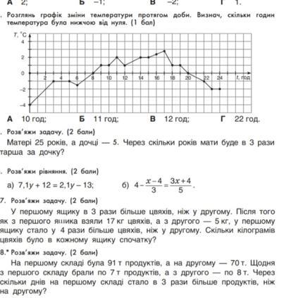 4. Розглянь графік зміни температури протягом доби. Визнач, скiльки годин