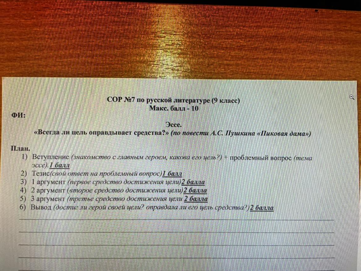 6) Вывод (достиг ли герой своей цели? оправдала ли его цель средства?)2 балла