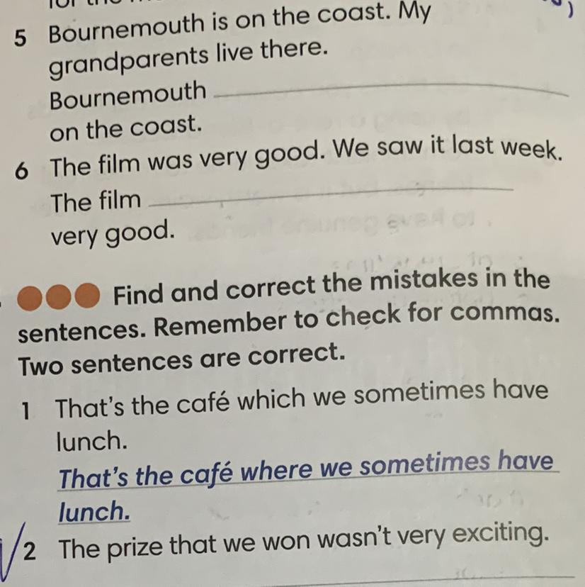 Combine the sentences using relative clauses. Use who,which or where. Add commas where necessary! 5 и 6