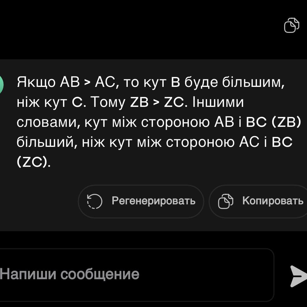 У трикутнику ABC AB > AC. Порівняйте Z В і Z С цього трикутника.