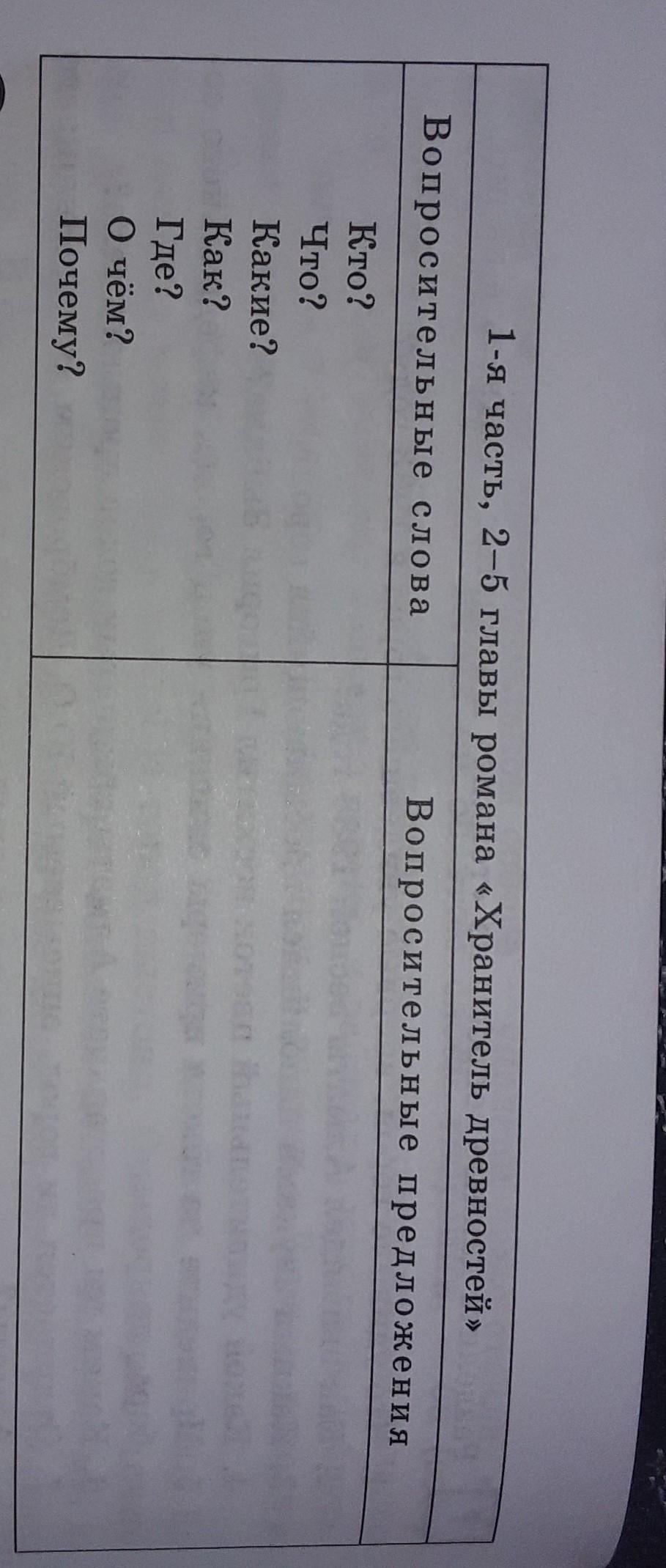 Перед вами таблица Вопросительные слова . На основе прочитанных в хрестоматии 2-5 глав из 1 - й части романа составьте вопросы к тексту , используя вопросительные слова из левой графы таблицы . Запишите по лученные вопросительные предложения в правой графе . Устно ответьте на них .пж Срочно??