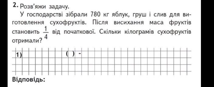 1) 780 : 4 = 195 (кг) - маса сухофруктів;