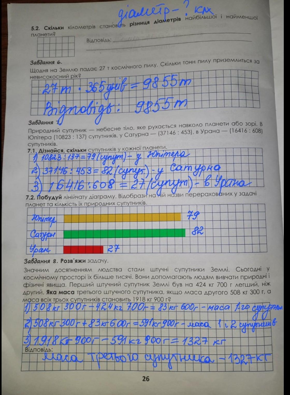 Завдання 5.2 не розвязано, бо напевно дані про діаметри найбільшої та найменшої планет залишилися на попередній сторінці зошита