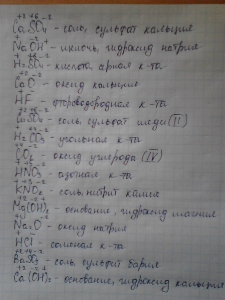 Саso4 ,naoh,h2so4 ,сao,hf,cuso4,h2co3,co2,hno3,kno2,mg(oh)2,na2o,hci,baso3,сa(oh)2