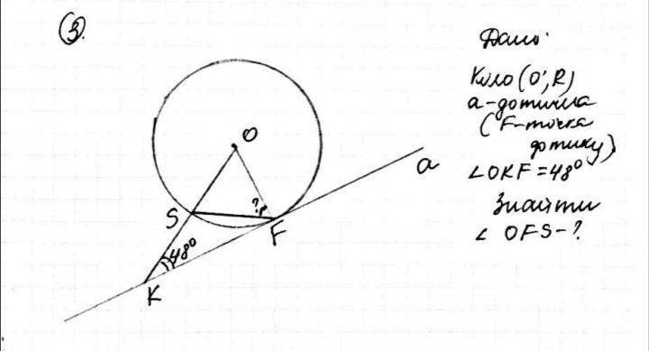 ΔSOF - рівнобедрений ( OS = OF = r ) , тому ∠OFS = ( 180° - ∠O ) : 2 =