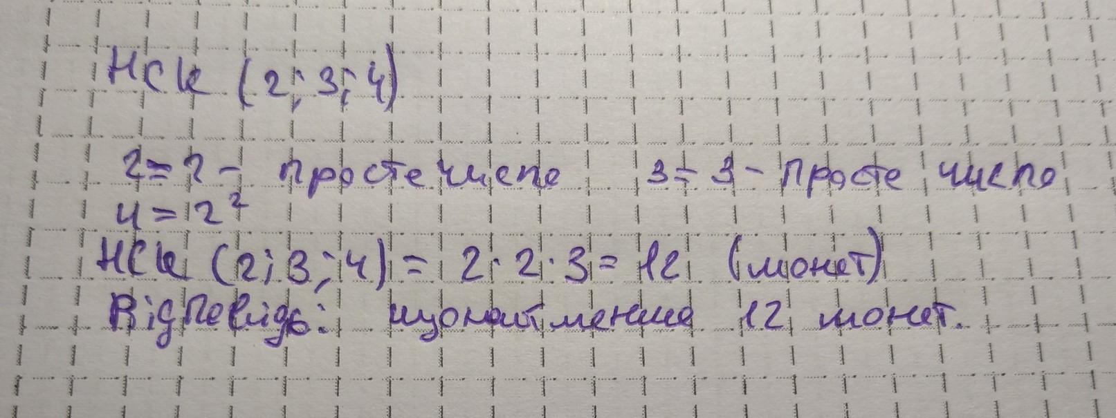 монети зі скарбнички можна розкласти по 2 штуки , або по 3 , або по 4