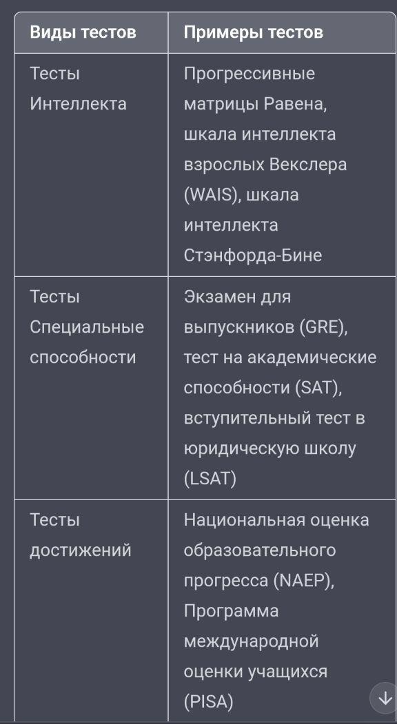 Нужно заполнить таблицу: Привести примеры известных тестов каждого вида.
