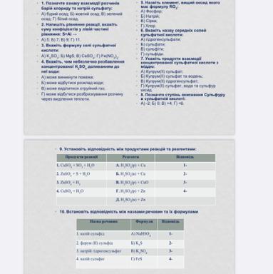 • 9. Установіть відповідність між продуктами реакцій та реагентами: