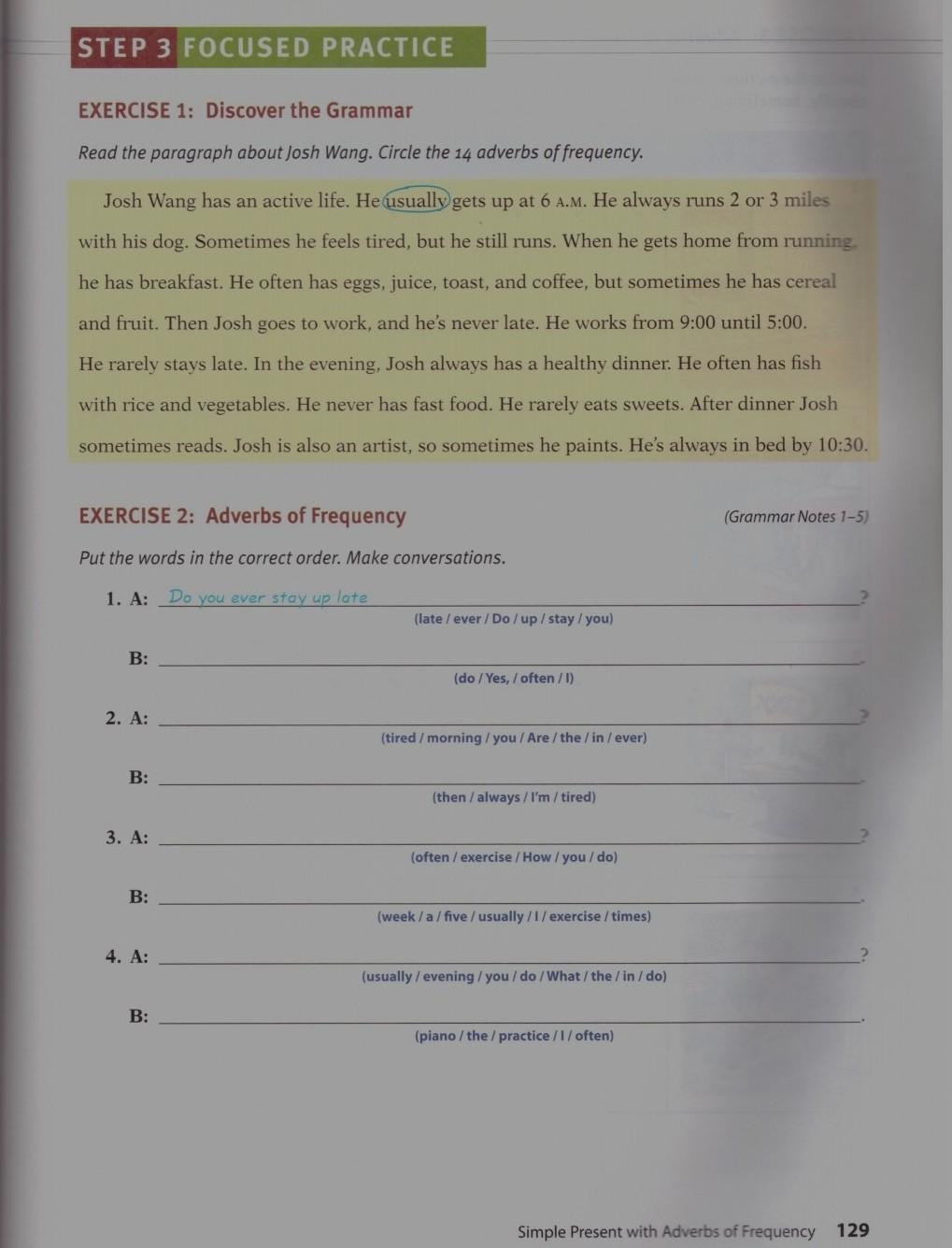 5)How often do you exercise. 6)I usually exercise 5 times a week. 7)What do you usually do in the evening?8)I often practice the piano