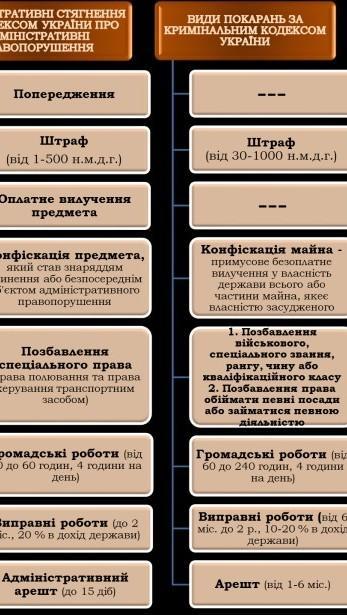 види адміністративної та кримінальної відповідальності неповнолітніх (таблиця)