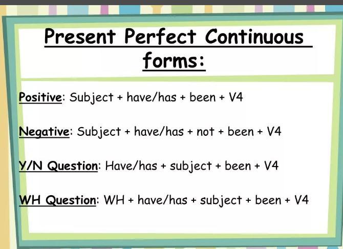 1 have been running 2 has been watching 3 have been playing 4 has been reading 5 have been training