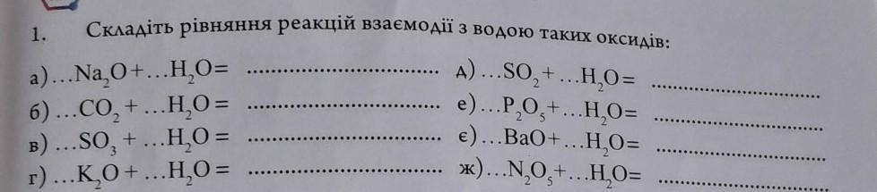 1. Складіть рівняння реакцій взаємодії з водою таких оксидів. ДОПОМОЖІТЬ БЛАГАЮ ВАС.. ДАЮ 60 БАЛІВ
