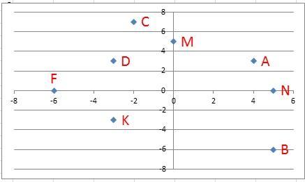 нс, 4 - Позначте на координатній площині точки А (4; 3); В (5; -6 C (-2; 7); D (-3; 3); K (-3; -3); M (0; 5); N (5; 0); F (-6; 0)