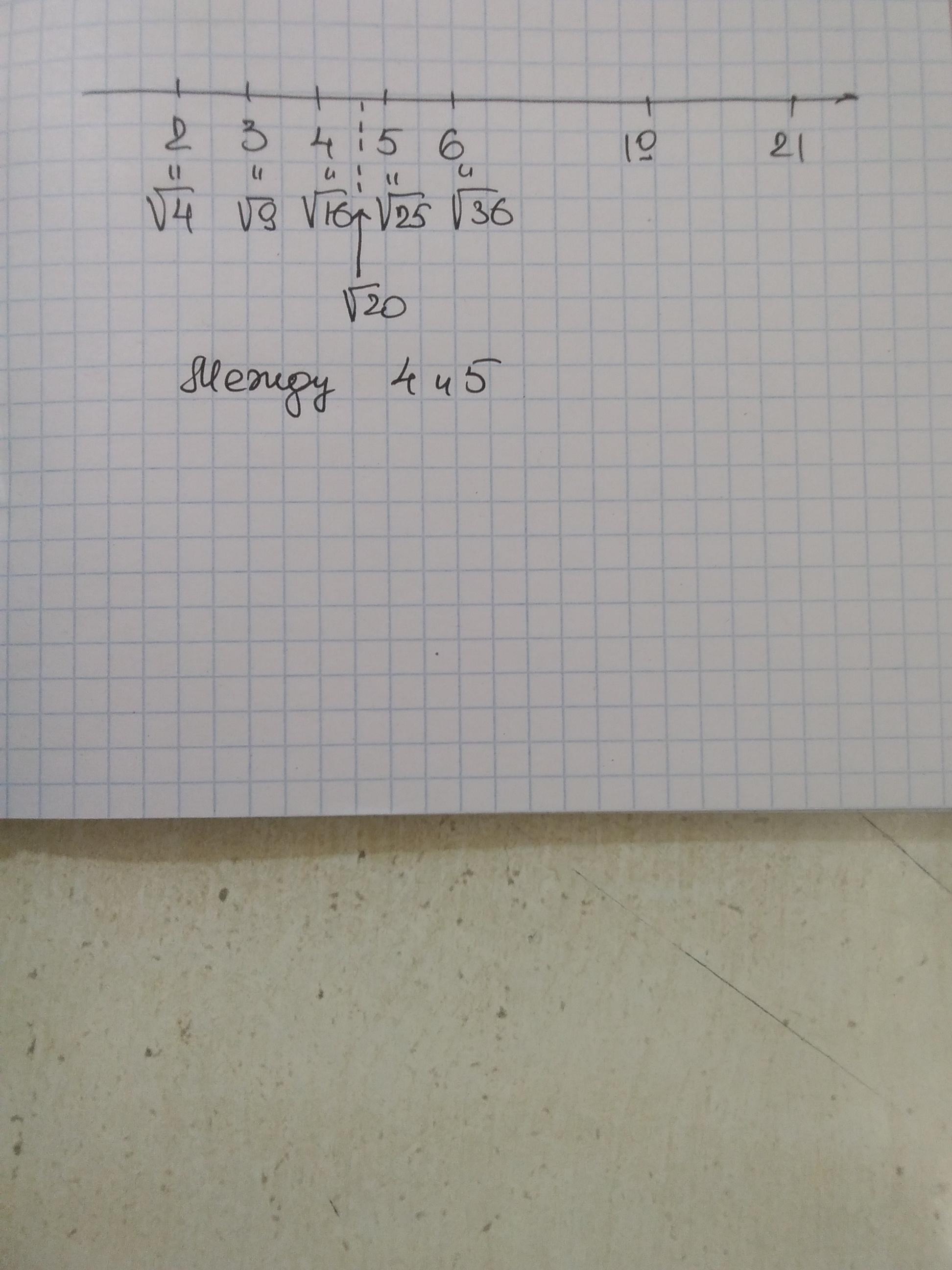 Виберіть послідовні натуральні числа, між якими розташоване на числовій прямій ірраціональне число √20
