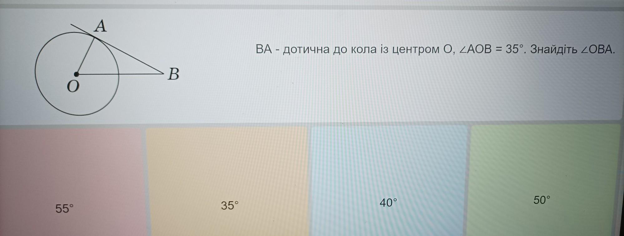 ∠ОВА=90°-∠АОВ=90°-35°=55°
