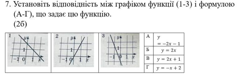 Установіть відповідність між графіком функції (1-3) і формулою (А-Г), що задає цю функцію.