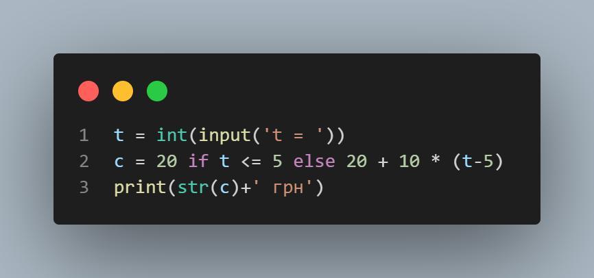c = 20 if t <= 5 else 20 + 10 * (t-5)