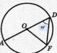 ΔDOF - рівнобедрений (ОD = OF як радіуси). Оскільки кути при основі рівнобедреного трикутника рівні, то ∠OFD =∠ODF = 59°.