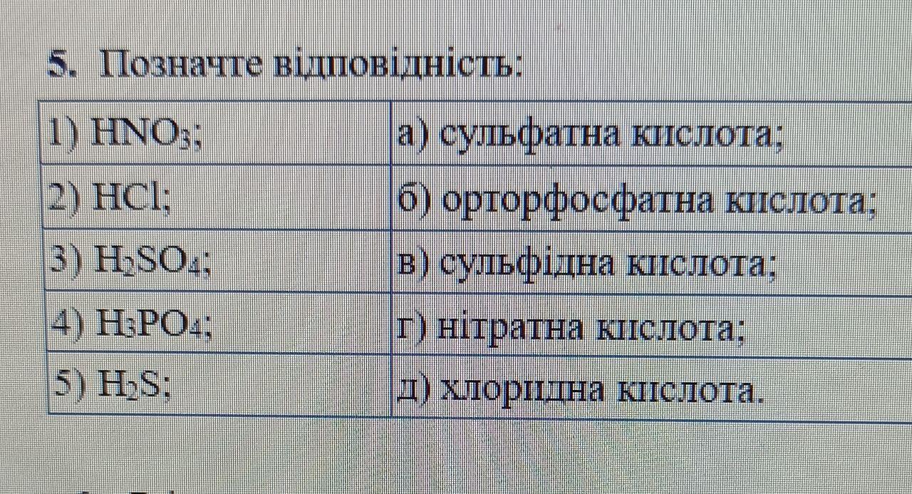 Відповідь: 1-г, 2-д, 3-а, 4-б, 5-в