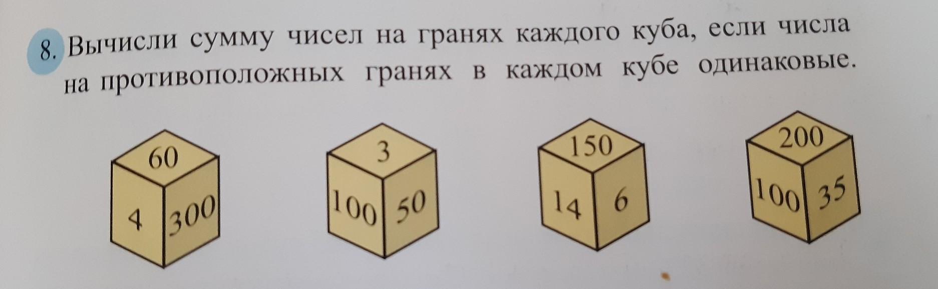Первый куб: 60 * 2 + 4 * 2 + 300 * 2 = 120 + 8 + 600 = 728