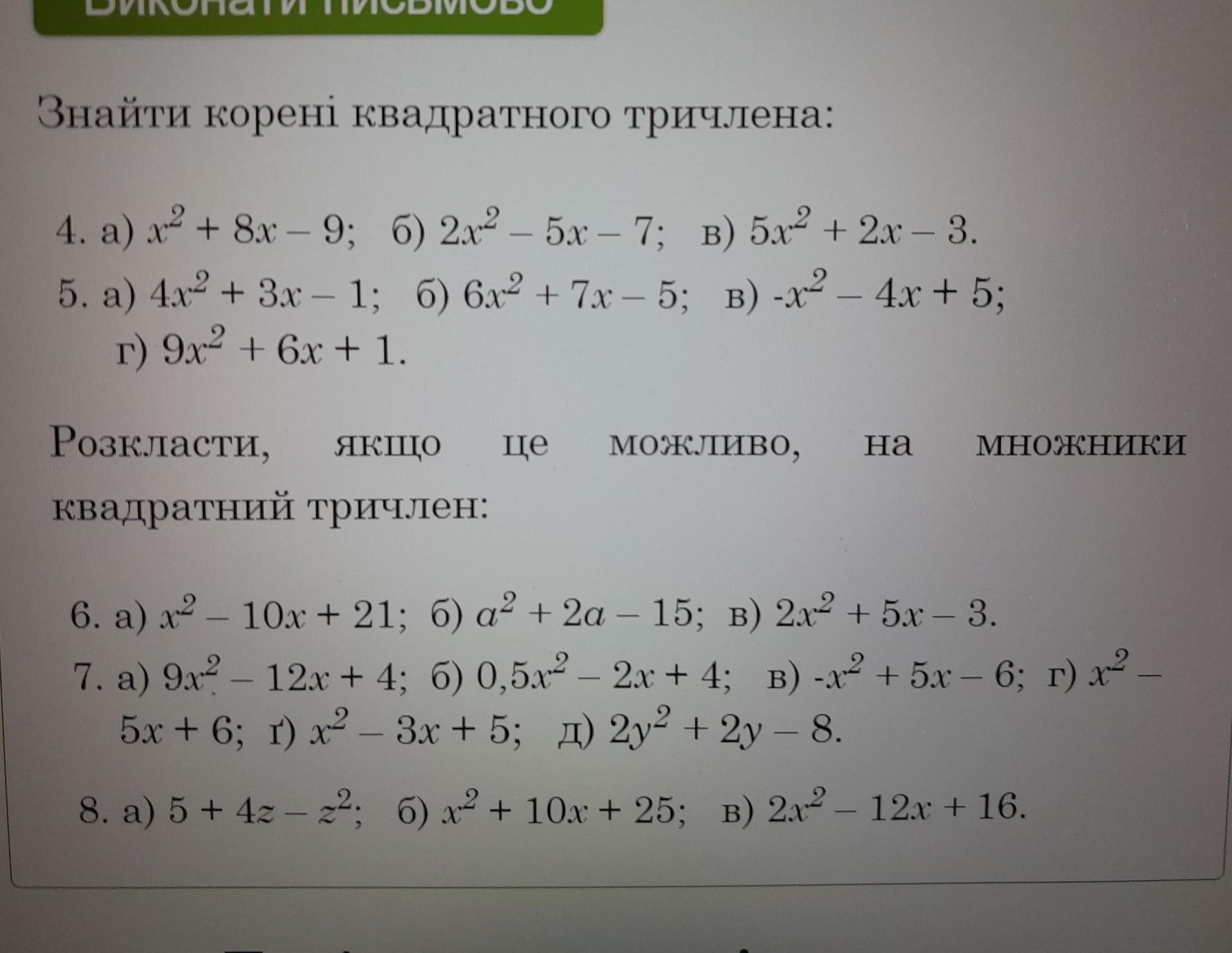 x₂ = (-b + √D )/(2·a) = ( -8 + 100 )/(2·1) = ( -8 + 10 )/2 = 2/2 = 1