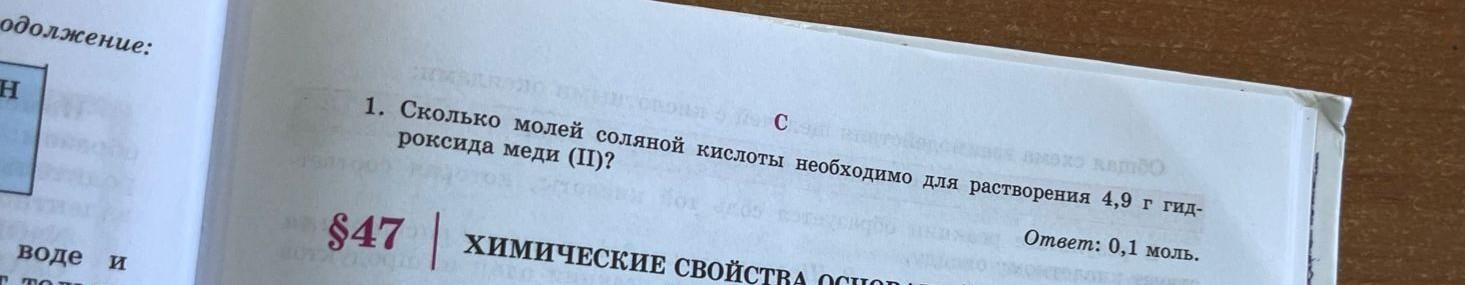 C . Сколько молей соляной кислоты необходимо для растворения 4,9 г гид- роксида меди (II)? Ответ: 0,1 моль.