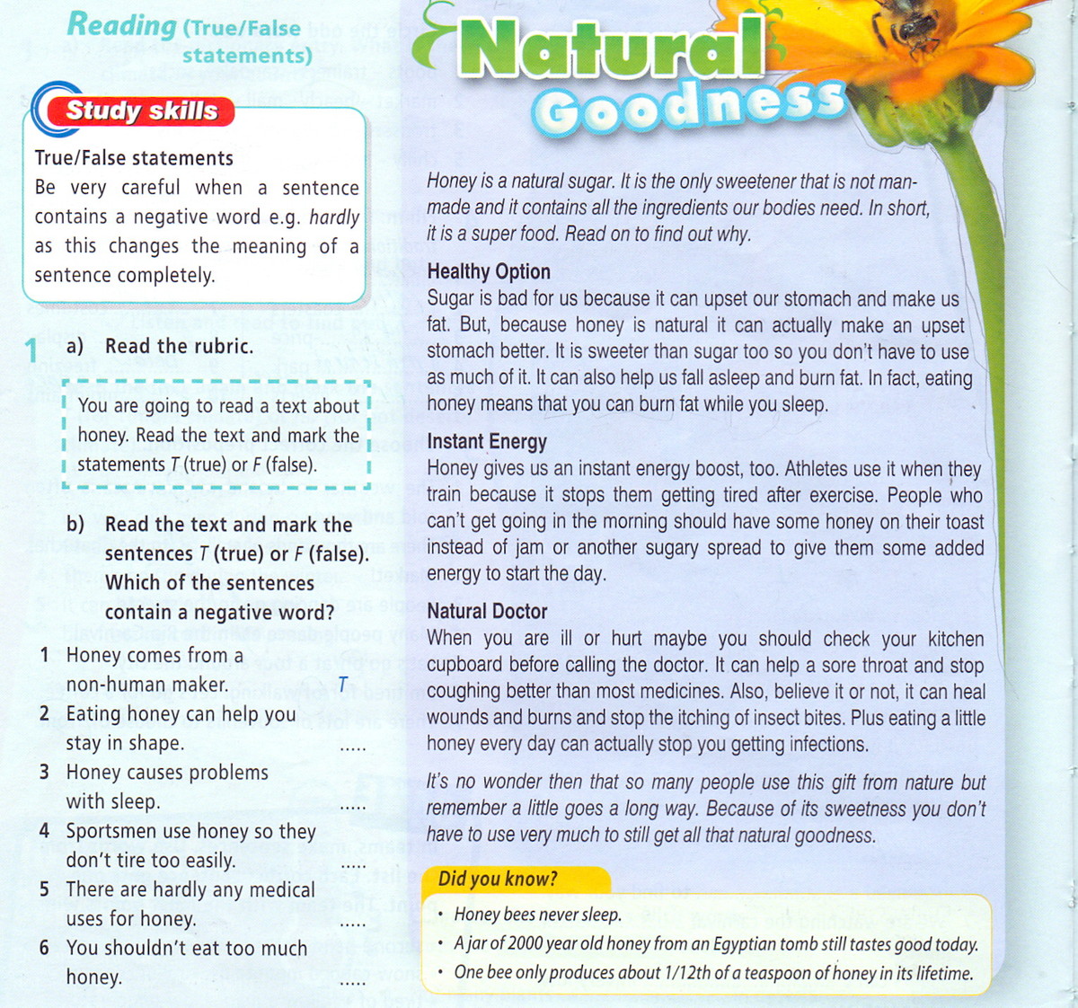 помогите сделать англ яз вот картинка номер 1b (поставить True или False) с доказательством из текста