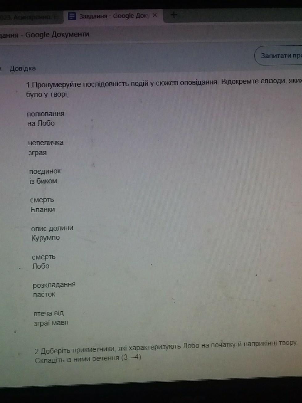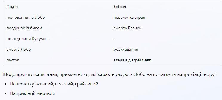Прономеруйте послідовність подій у сюжетті оповідання вілокремти епізоди якийх не було у творі лобо