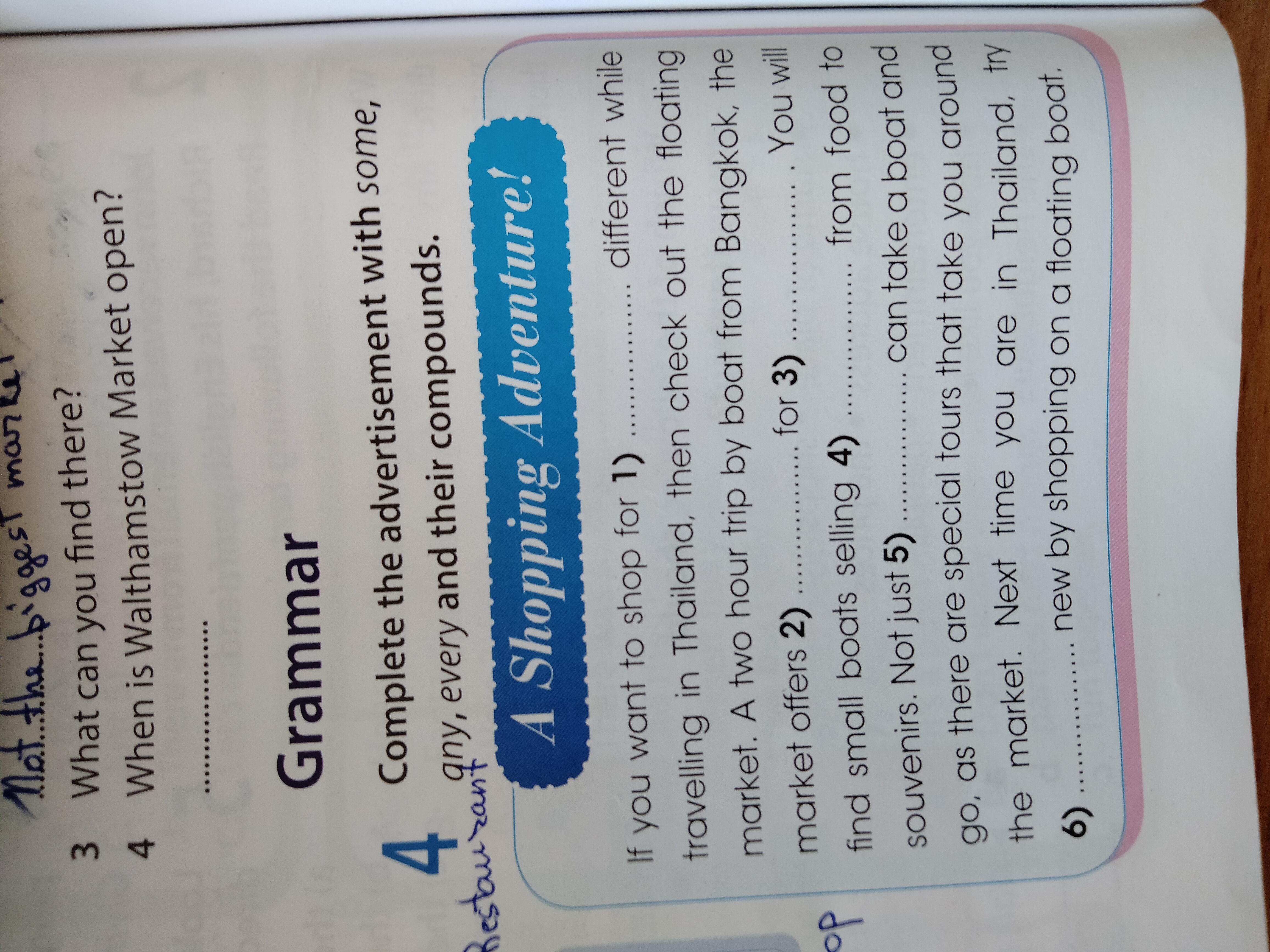 If you want to shop for 1) different while travelling in Thailand, then check out the floating market. A two hour trip by boat from Bangkok, the market offers 2) find small boats selling 4) souvenirs. Not just 5) go, as there are special tours that take you around the market. Next time you are in Thailand, try 6).. .............new by shopping on a floating boat.