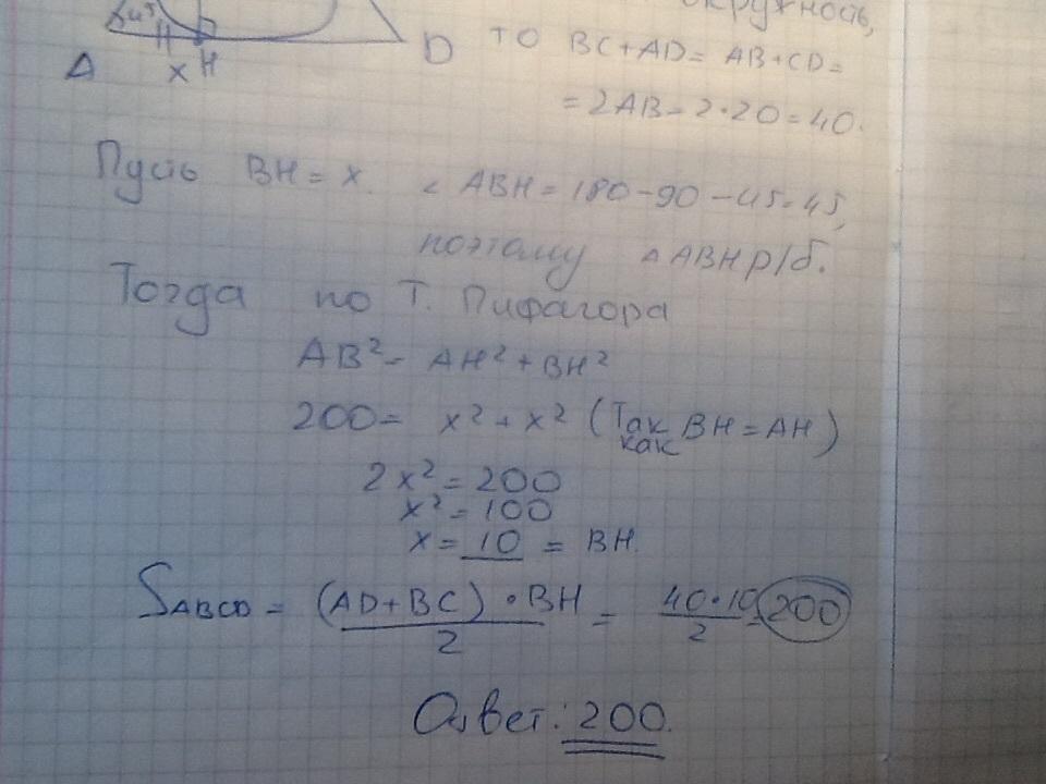 друга бічна сторона утворює кут 45 градусів з більшою основою.
