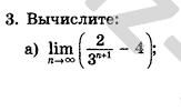 lim_{n to infty} left(frac{2}{3^{n+1}}-4right)=left(frac{2}{3^{infty+1}}-4right)=left(frac{2}{3^infty}-4right)=\