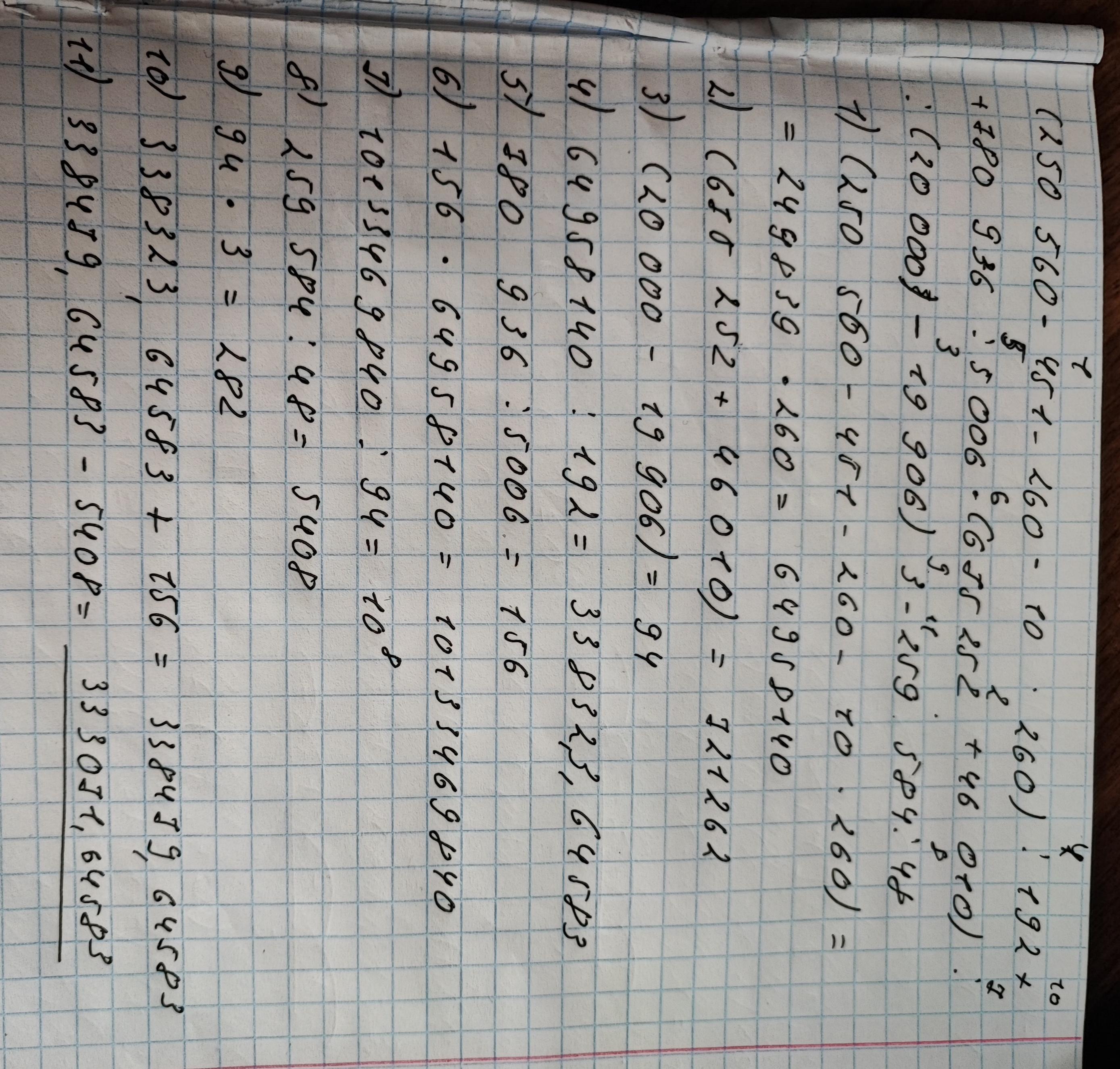 11 Определи порядок действий и найди значения выражений. (250 560-451-260-10 260): 192 + 780 936:5 006 (675 252 +46 010): (20 000 - 19 906) 3-259 584:48