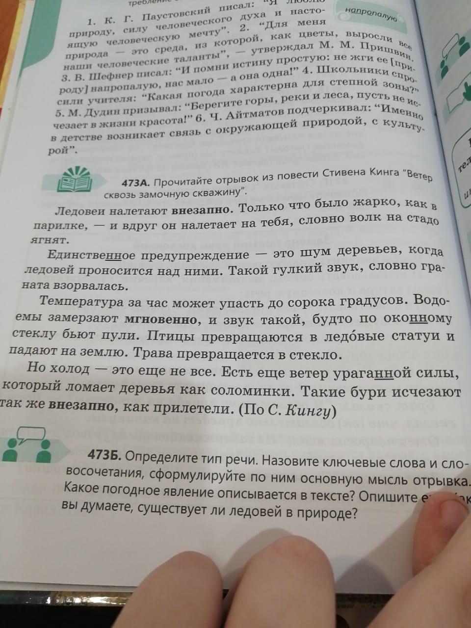 473Б. Определите тип речи. Назовите ключевые слова и сло