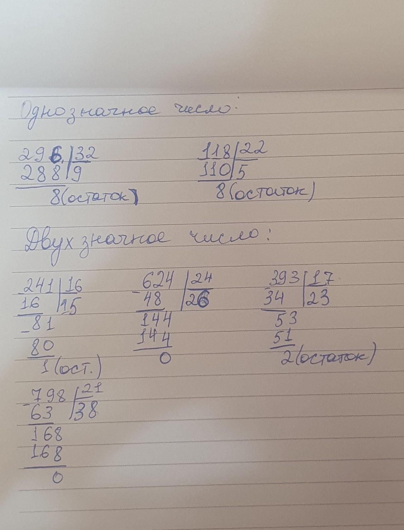 вычислите сначала те примеры, в которых частное ровно однозначному числу,а затем те,в которых частное равно двухзначному числу