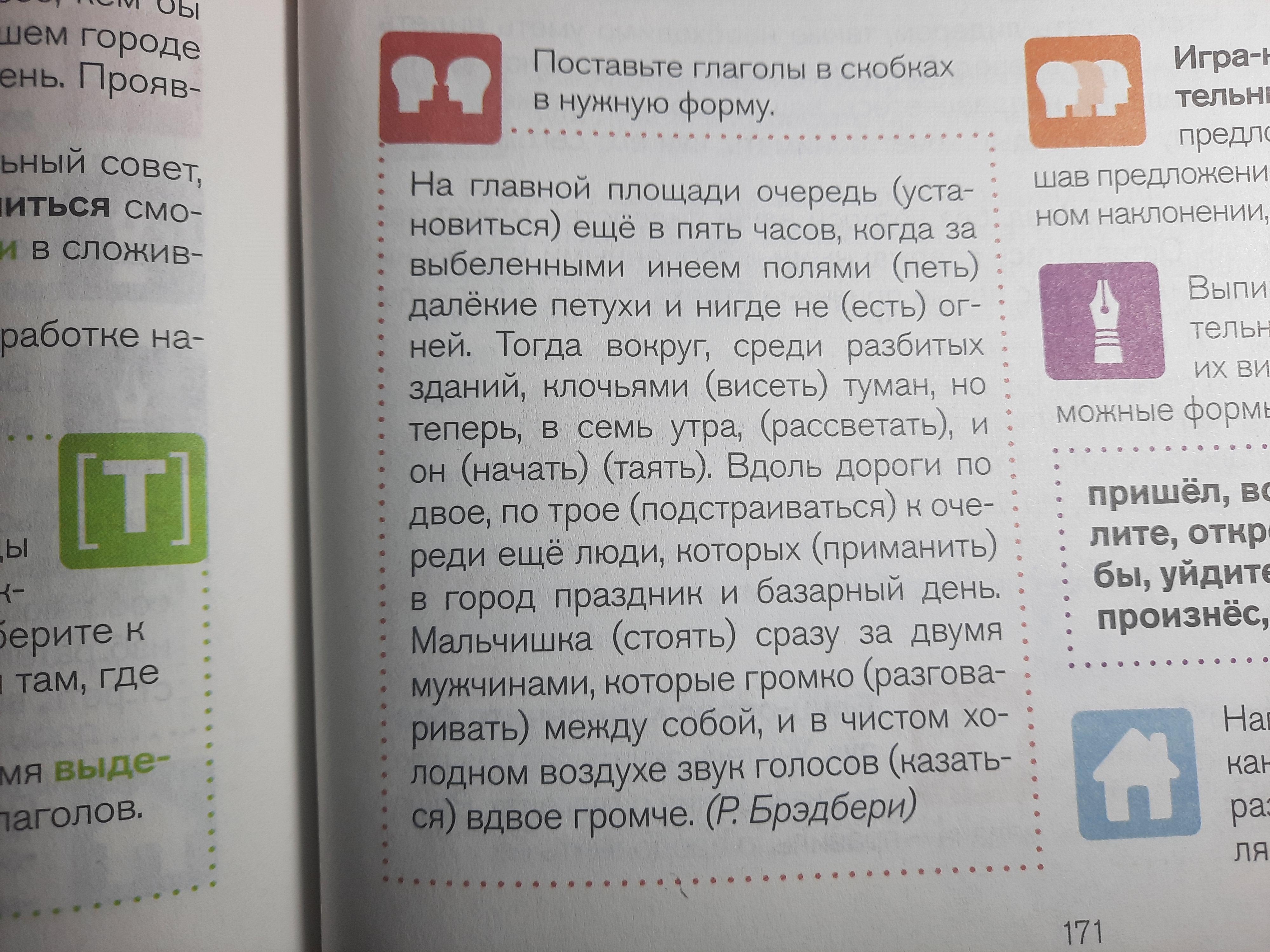 Установилось,пели,имеется,висит,рассветает,начинает таять,подстраиваются,принимают,стоит,разговаривают,кажется.