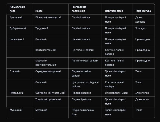кількість опадів | назва | географічне положення | повітряні маси | температура