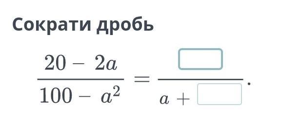 (20-2a) / (100-a²)= 2(10-a) / (10-a)(10+a)=2 /(a+10)