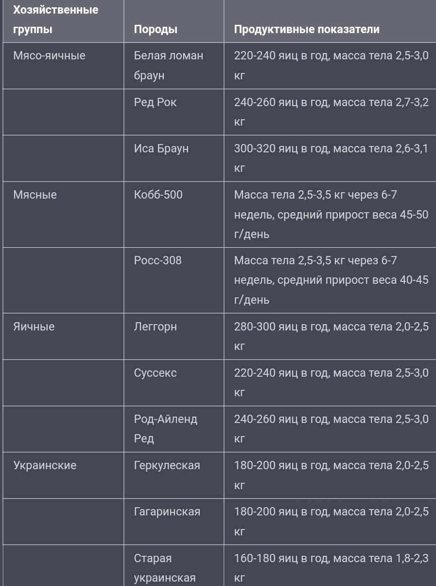 Хозяйственные группы и породы кур Хозяйственные группы Породы Продуктивные показатели