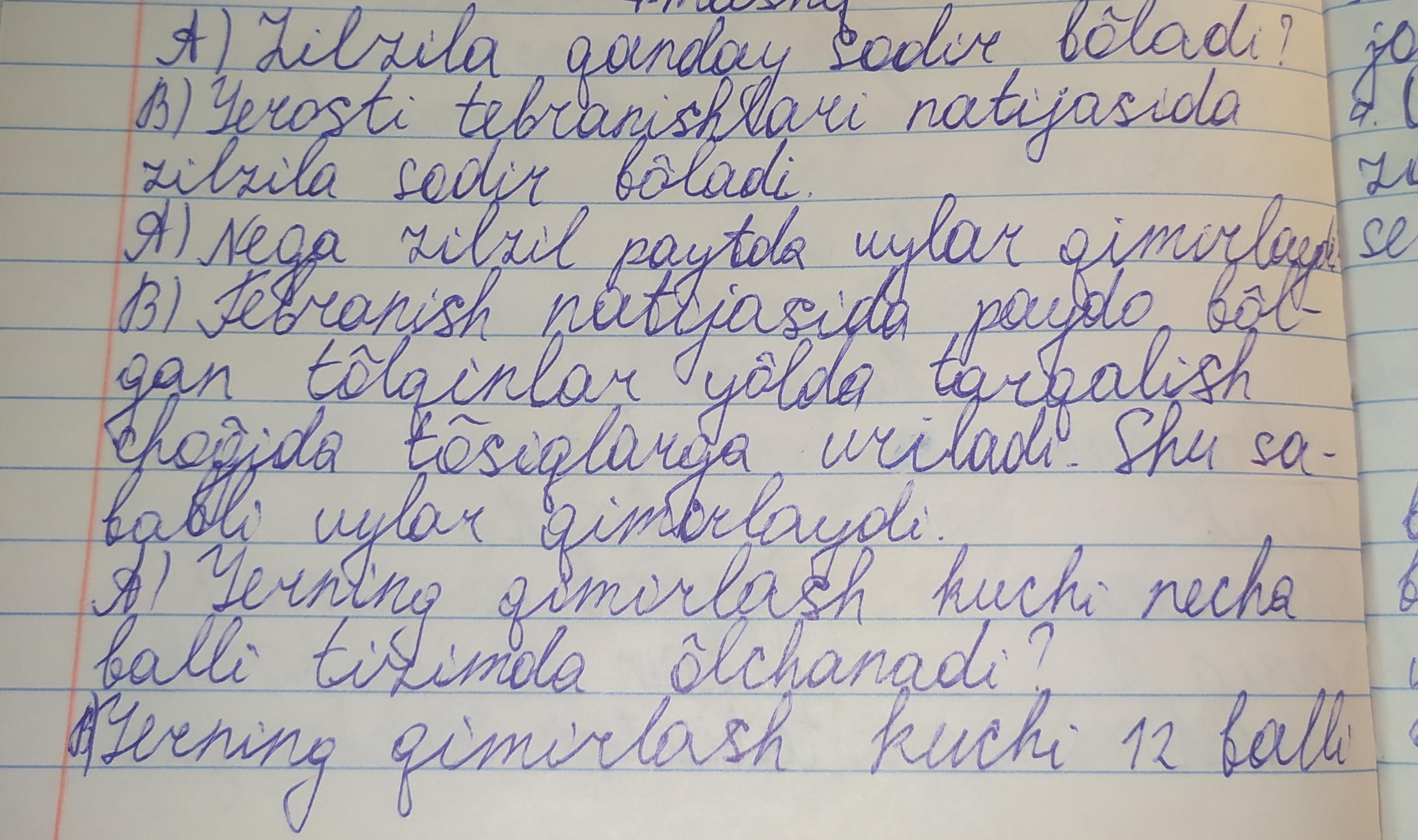 A) Zilzila qanday sodir bo'ladi?