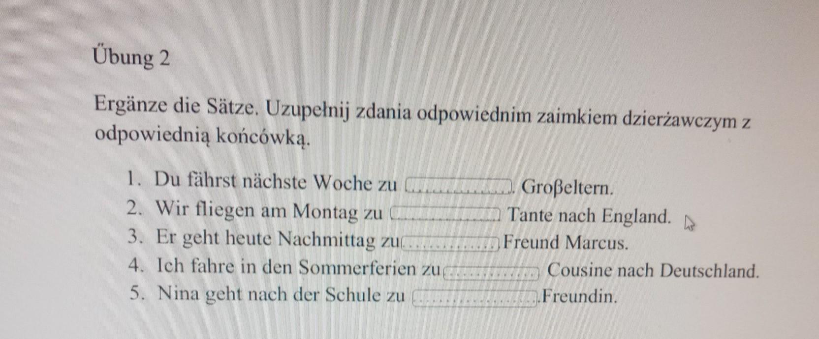Відповідь:1. zu den Grosseltern (тому що там Dativ і множина)