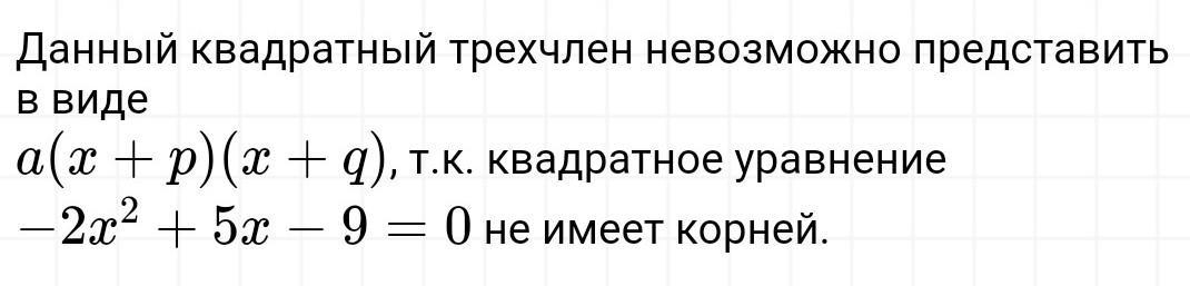2. Розкладіть квадратний тричлен -2х^2 +5х-9 на множники, якщо це можливо.