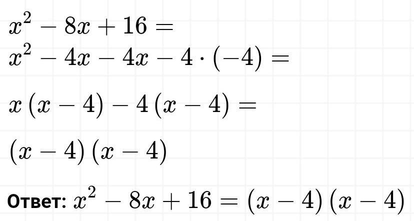 1. Розкладіть квадратний тричлен х^2-8х+16 на множники, якщо це можливо.